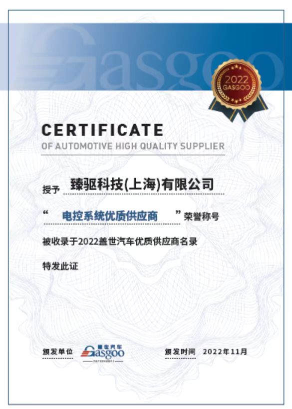 2022年12月8日,由蓋世汽車主辦的2022 第三屆汽車電驅動及關鍵技術大會在上海成功落幕。臻驅科技憑借行業領先的產品研發能力、自主可控的產業化實力和卓越優質的產品服務能力,被評為「2022蓋世汽車電控系統優質供應商」,并入選「2022蓋世汽車優質供應商名錄」