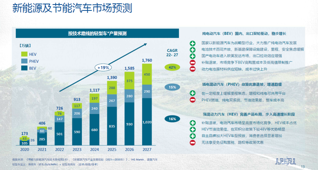 1.純電動汽車(BEV)國內、出口雙輪驅動,將實現穩步增長