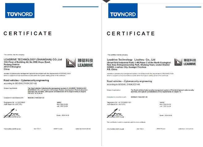 2024年5月11日,臻驅科技(上海)有限公司(以下簡稱“臻驅科技”)正式通過《ISO/SAE 21434道路車輛-網(wǎng)絡安全工程》(以下簡稱“ISO/SAE 21434”)汽車網(wǎng)絡安全管理體系認證,獲得此證書標志著臻驅科技已經(jīng)建立了完整的汽車網(wǎng)絡安全管理體系,具備了產(chǎn)品網(wǎng)絡安全開發(fā)和管理能力,是公司體系建設中又一關鍵里程碑。