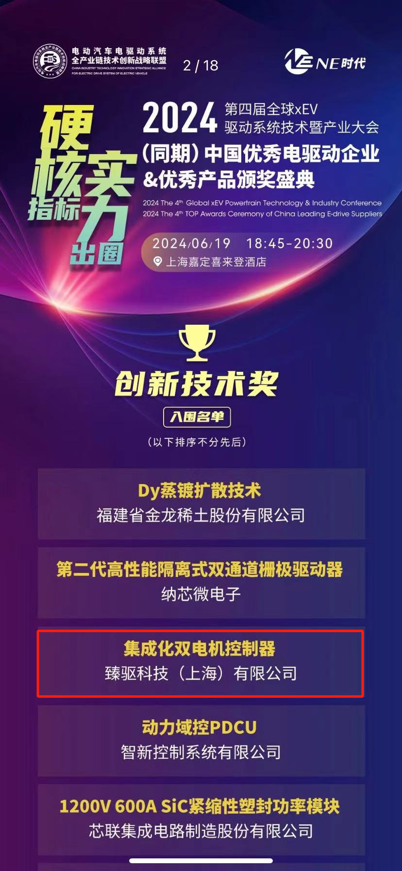 喜報 | 臻驅科技榮獲中國電驅動產業技術創新獎并入選雙電控TOP企業-臻驅科技(上海)股份有限公司